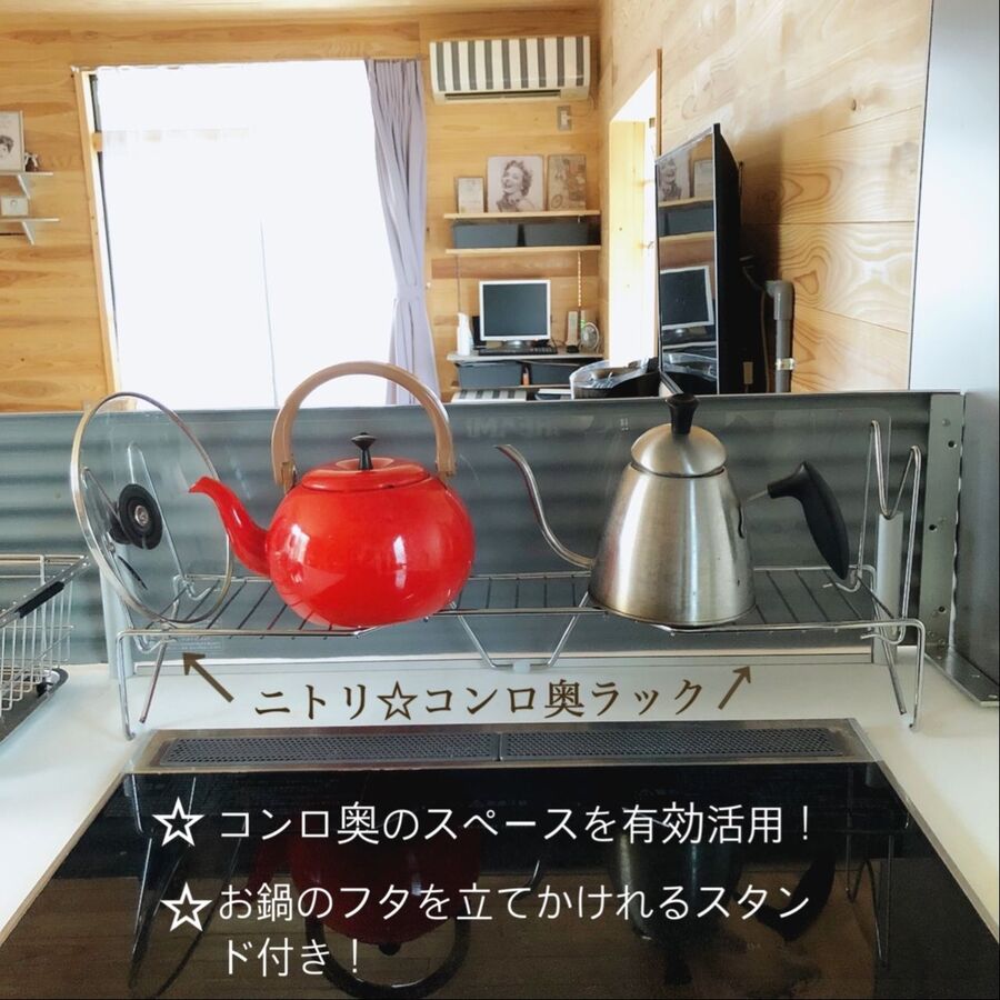 コンロ奥を有効活用 鍋ブタまで置けてスッキリしちゃうニトリのコンロ奥ラック 暮らしニスタ