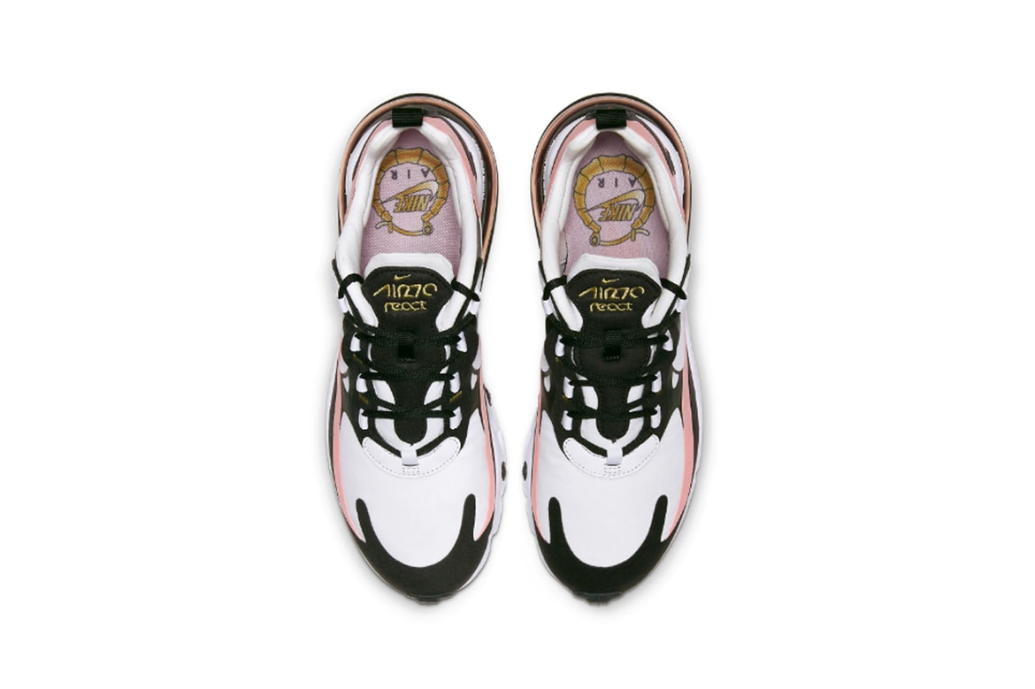 Nike Air Max 270 React In Black White Bleached Coral Metallic Gold