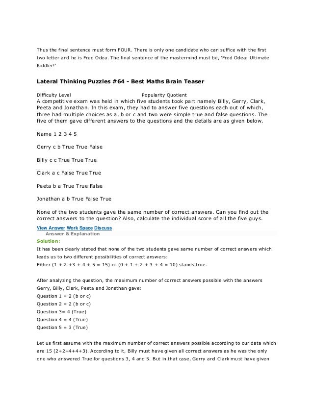 101 Brain Teasers With Answers Hard And Easy Brain Teasers