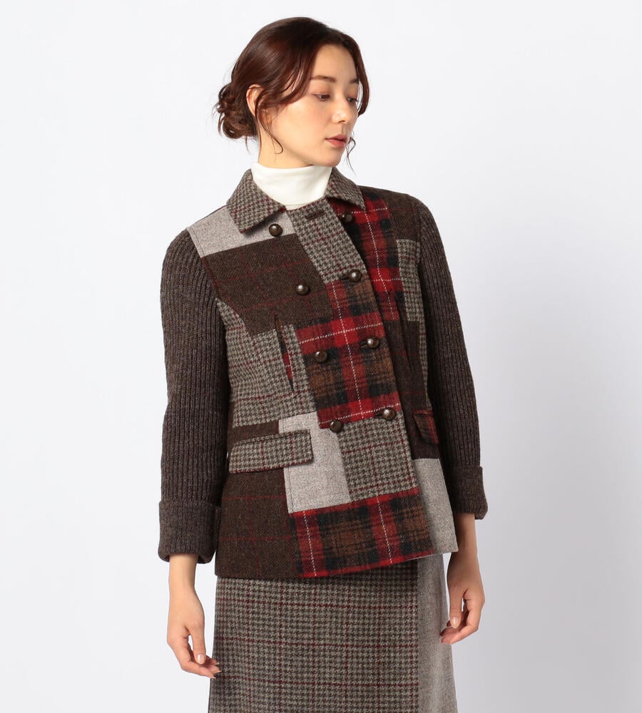 Child Woman チャイルドウーマン の ハリスツイードパッチワーク コール衿チェスターコート チェスターコート Wear