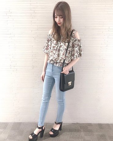 Ingni Store イング公式 No Twitter おすすめコーデ 夏の青空に映える 真っ白なスカートを使ったコーデ 小花柄がガーリーな黒のオフショルで メリハリをプラス ふんわりスカートで大人見えなコーデは お買い物やドライブデートにおすすめ 最新