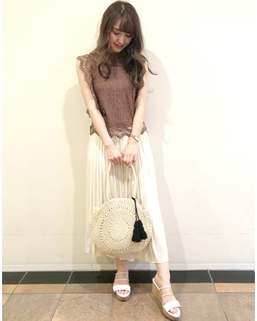 コーディネート 後ろねじれトップス レイシーニットスカート クロスバンド コルクサンダル Ingni イング 公式通販 Ingni Store イングストア