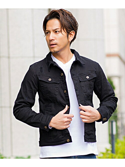 Cavaria キャバリア の ストレッチダメージブラックデニムジャケット Camy18 09 デニムジャケット Wear