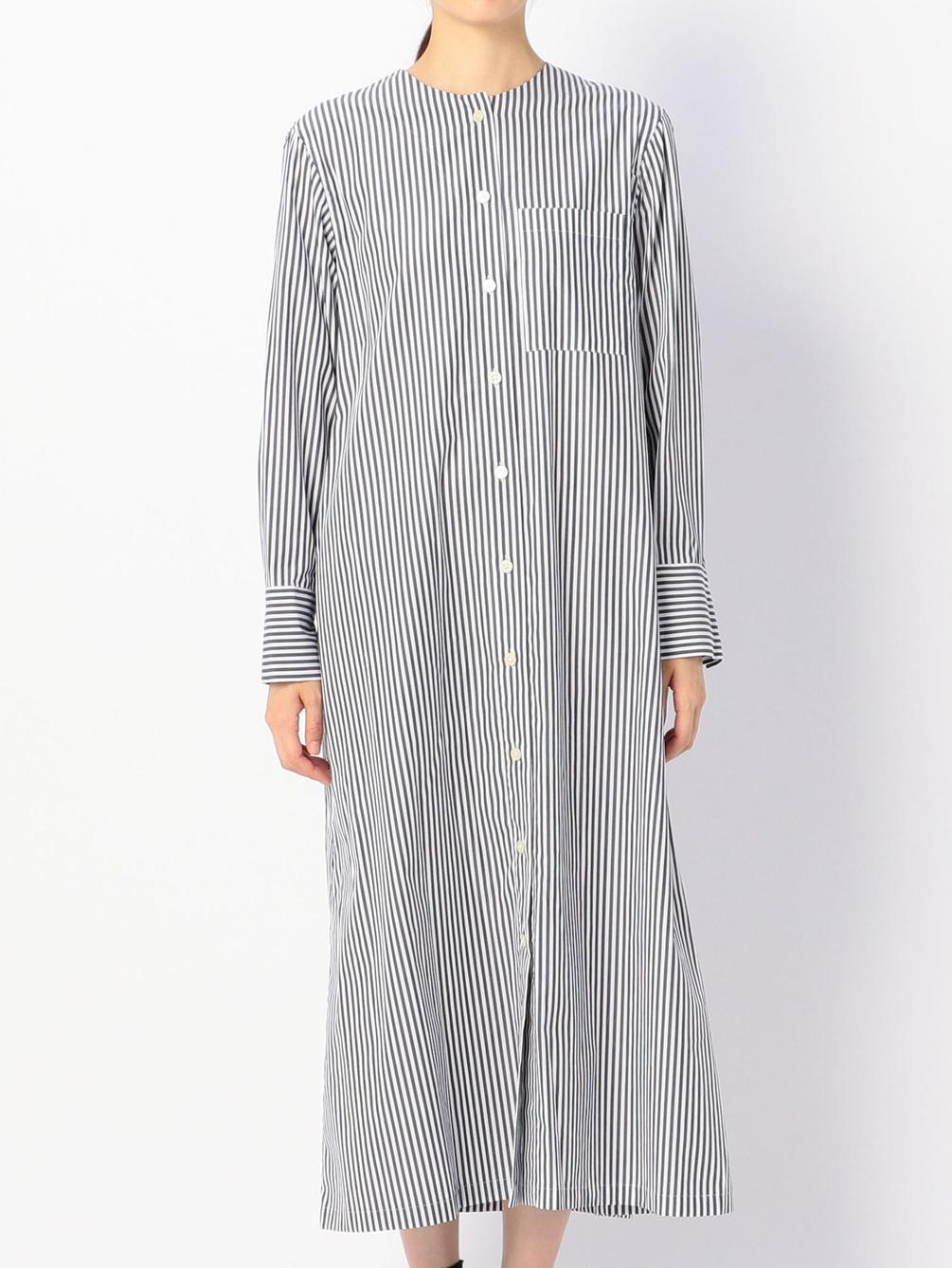 メール便不可 ロングワンピース レディース ストライプ ノースリーブ スタンドカラー バンドカラー ストレート Iライン 薄手 ss Coca コカ 16 02 泉見祐希さん シャツワンピース ロング丈 マキシ丈 ミモレ丈 ノーカラー ロングシャツ シャツディガン