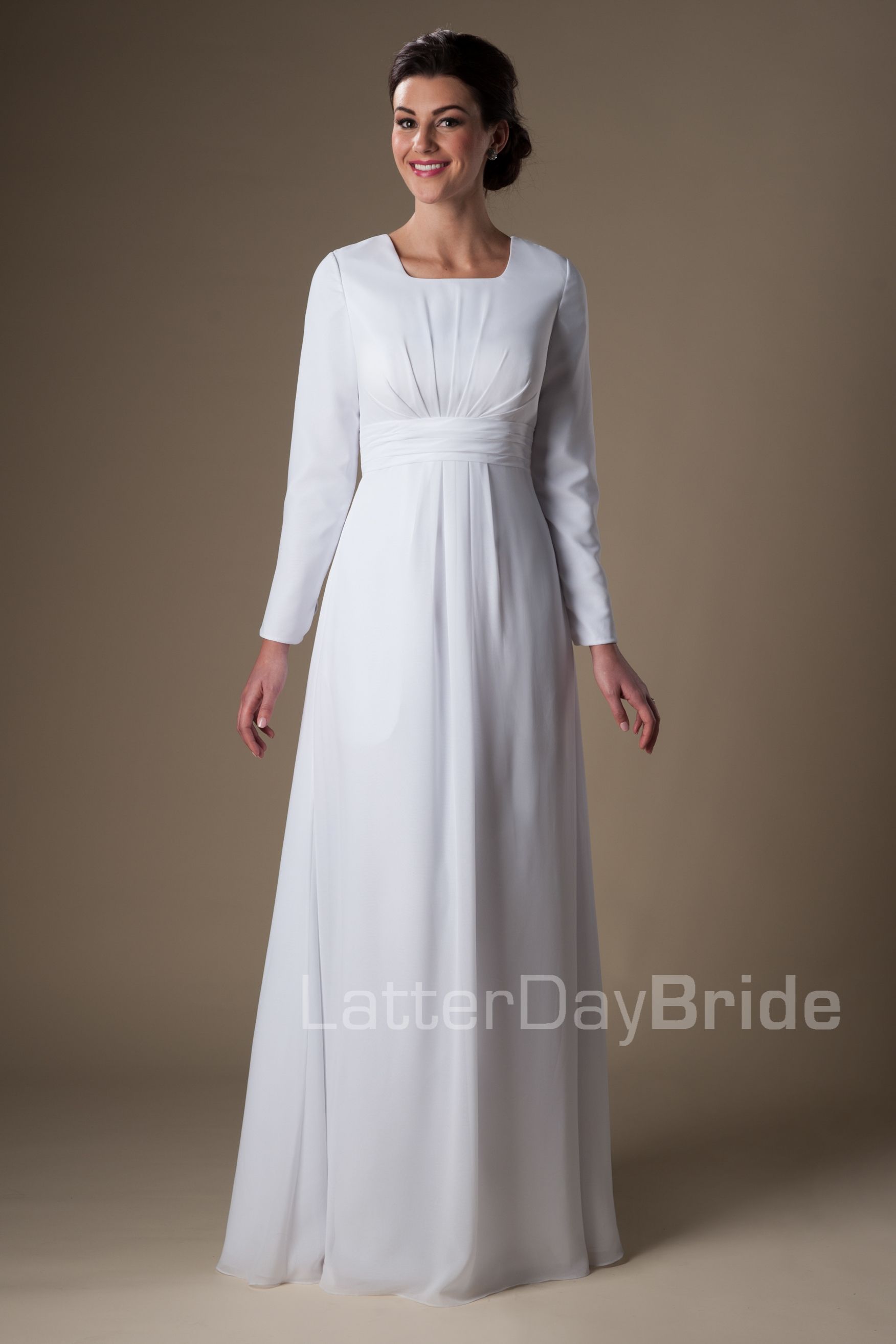 Discount Simple White Chiffon Temple Long Sleeves Wedding Dresses Sleeves A Line Floor Length Informal Reception Bridal Gowns Rehearsal Dinner Dress Designer Wedding Gown High Fashion Wedding Dresses From Totallymodest 52 02 Dhgate Com