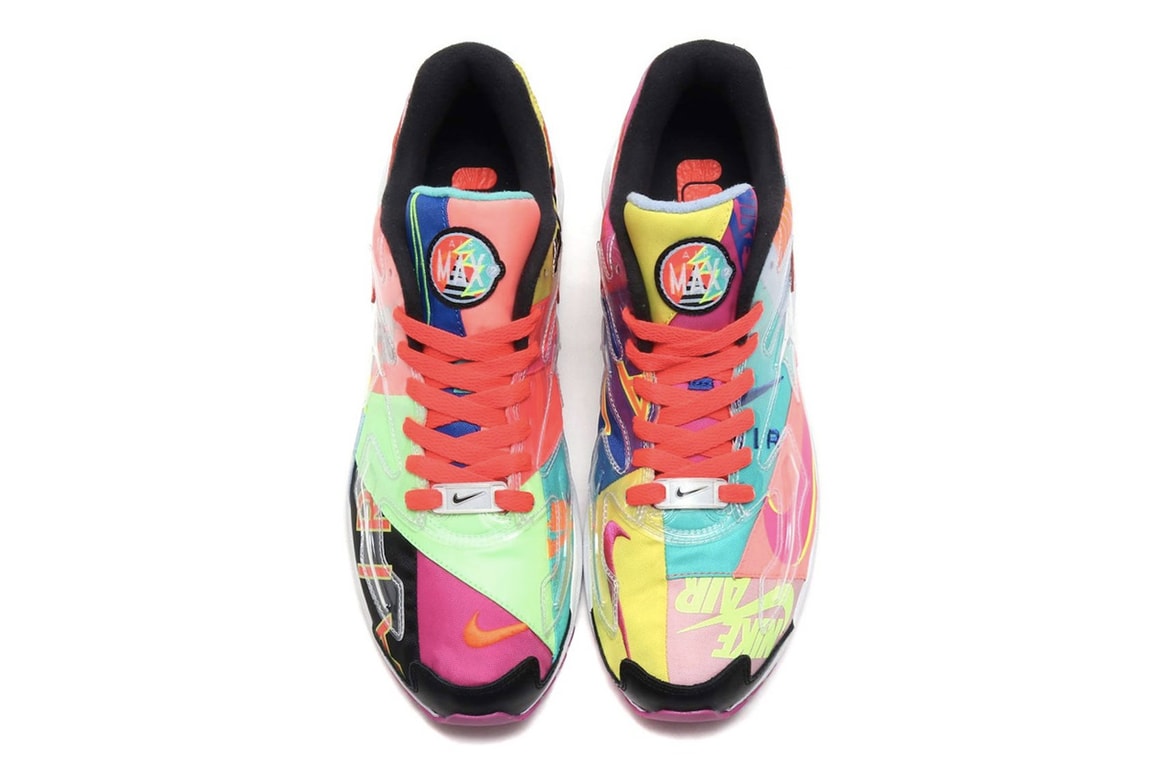 Scroll below to check out the new colorway. The upper of the atmos x Nike Air Max2 Light features bright and bold patchwork made up of panels that reference vintage Nike Sportswear garments. The vivid atmos x Nike Air Max2 Light takes inspiration from vintage Nike Sportswear pieces, combining an array of bright hues.