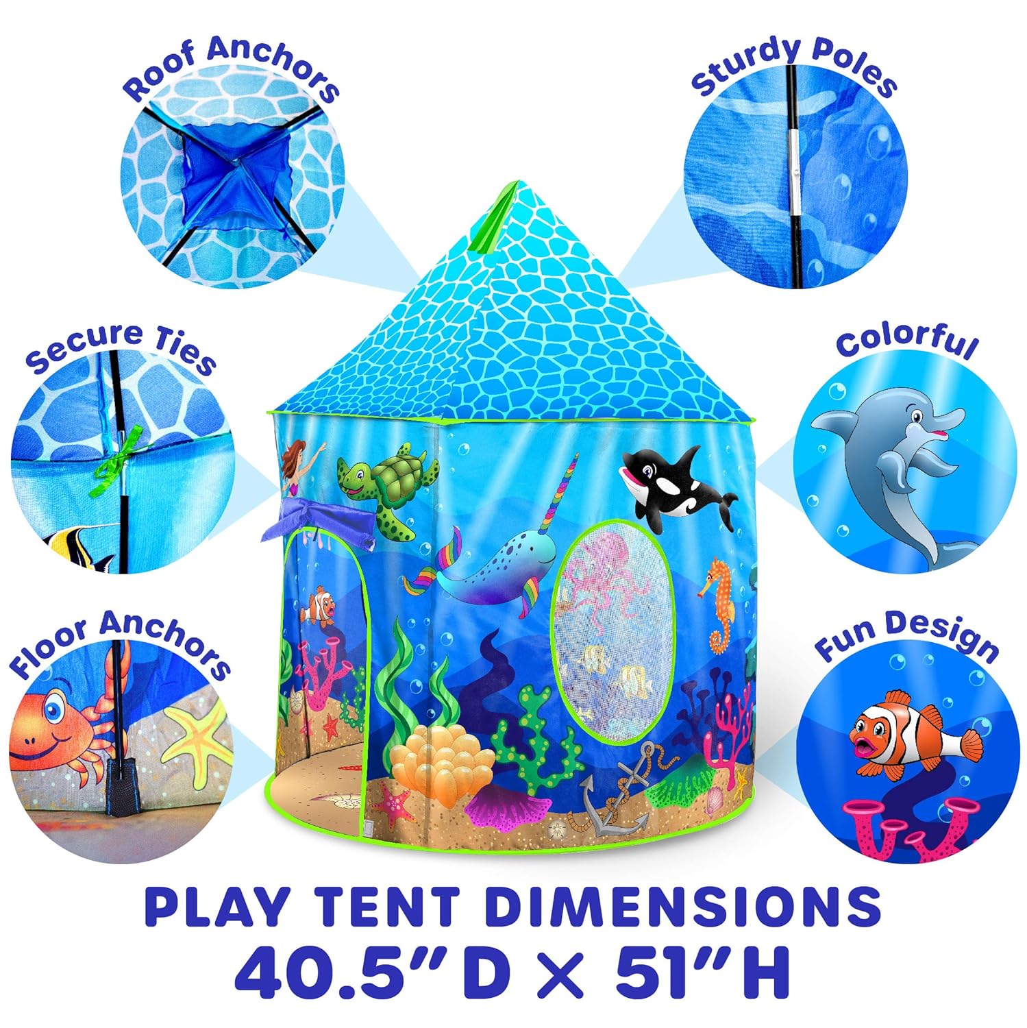 Usa Toyz Under The Sea Kids Tent Mermaid Kids Play Tent Indoor Playhouse With Pop Up Tent Storage Tote And Kaleidoscope
