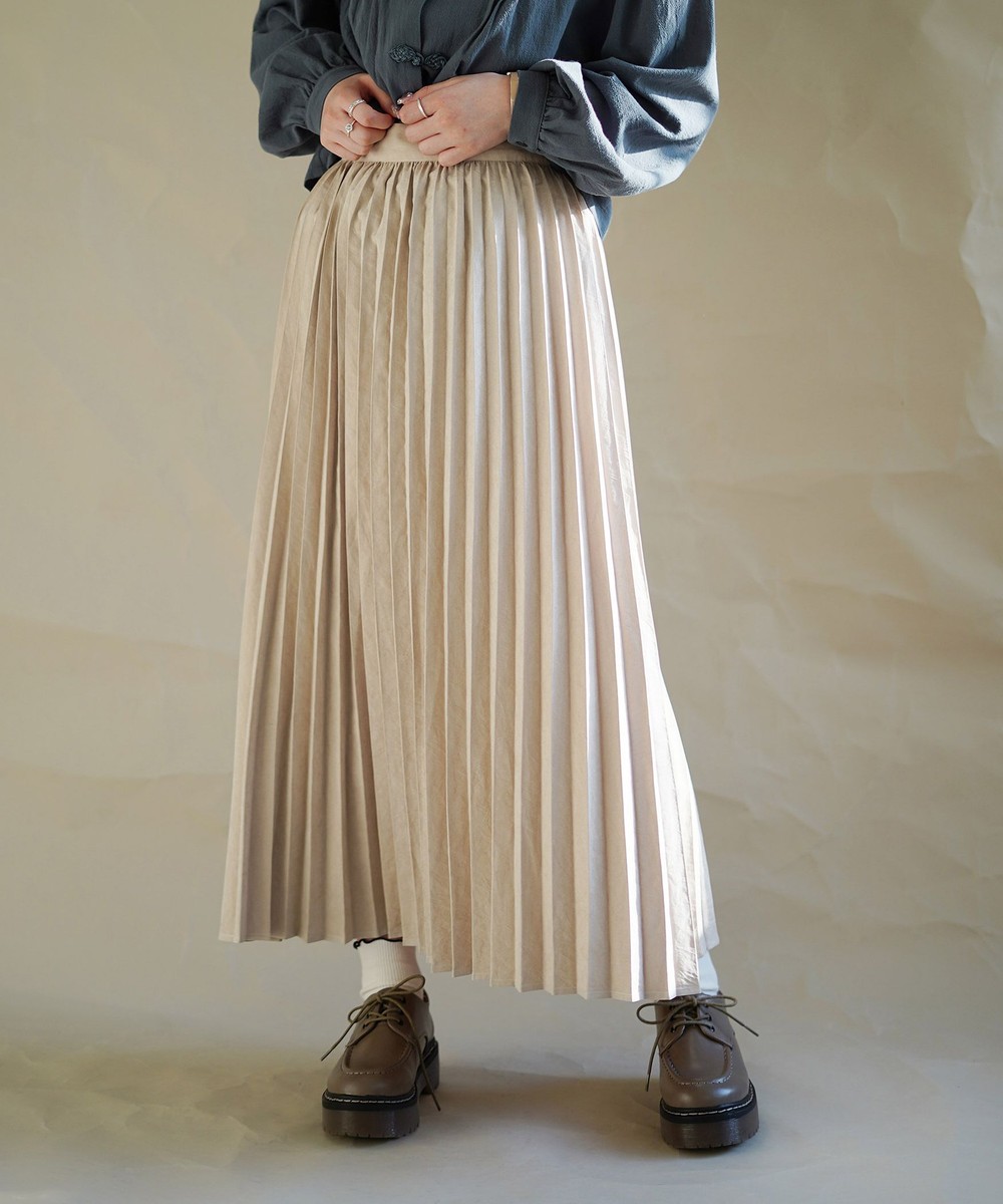 Allureville ニッケルサテンアコーディオンプリーツスカート ライトベージュ の通販 Elleshop エル ショップ