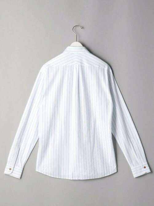 光沢感があり、着心地の良い、スマートな印象のシャツ サラっとした着心地で快適な着用感。 細かいピッチのストライプが特徴的でスマートな印象。 ハイゲージの生地の、綺麗な見え方と着用感の良い一着。.