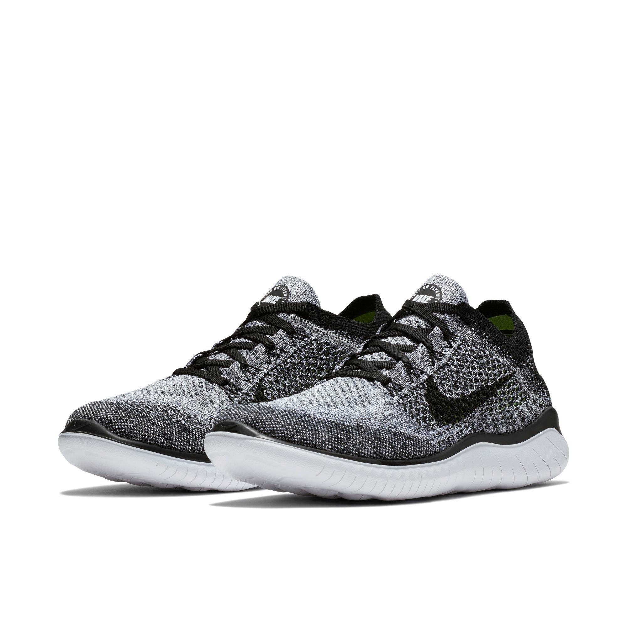 A solid black Swoosh covers the mid-panel with black laces and Nike branding on the tongue offering a contrasting touch to the. Nike Free RN Flyknit 18 Mens Running Size 8.5 White/Black 'Oreo' 9428 101. Its sock-like upper has more stretch yarns than previous versions, so it hugs your feet more than ever.